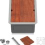 - Perfect Size + Full Accessories. Measuring 12x15x9 inches (fits15 inch minimum cabinet bases, please check your space), our undermount bar sink comes with all the accessories you need to start using it right away: a cutting board (chop veggies directly over the sink to reduce mess), a roll-up rack (air-dry dishes or set wet pots), bottom rinse grids (protect the sink from scratches), a basket drain assembly (catches food scraps to prevent clogs), plus a cutout template and mounting clips.